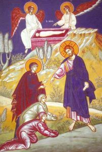 En todo caso, no parece que el sol salga para todos. O que todos quieran ver el sol. El evangelio de hoy es una postal en blanco y negro. En blanco, las mujeres: Jesús les salió al encuentro y les dijo: «Alegraos». Ellas se acercaron, le abrazaron los pies y se postraron ante él. Están bañadas en luz. Ha salido el Sol, Cristo, y brilla sobre ellas iluminando sus rostros con júbilos de cielo. En negro, los sumos sacerdotes: Dieron a los soldados una fuerte suma, encargándoles: «Decid que sus discípulos fueron de noche y robaron el cuerpo mientras vosotros dormíais». Son todo tinieblas y preocupación.