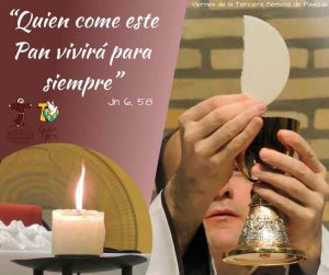 Este es el pan que baja del cielo, para que el hombre coma de él y no muera. Quien comulga, sin embargo, tiene vida eterna, y pasará a través de la muerte como quien cruza una puerta hacia el cielo.